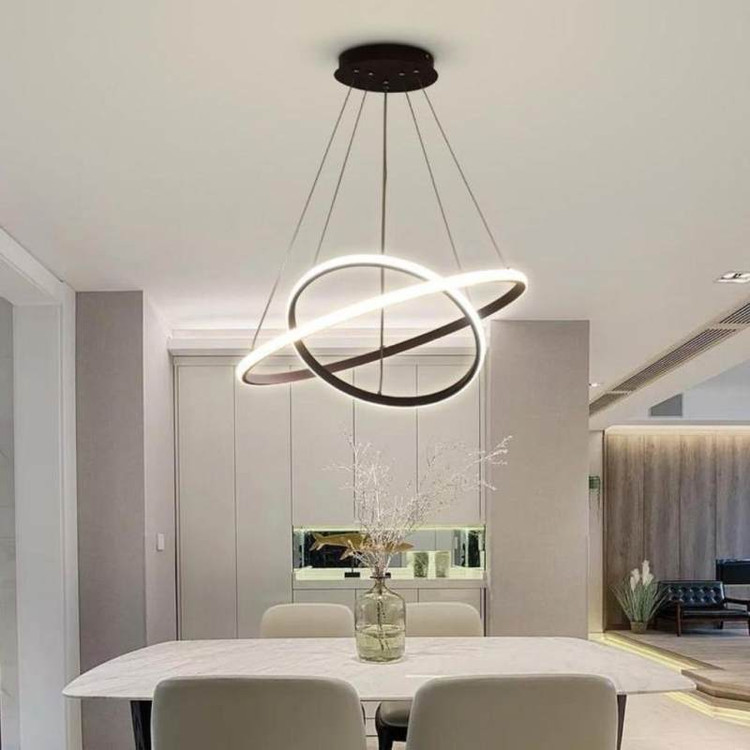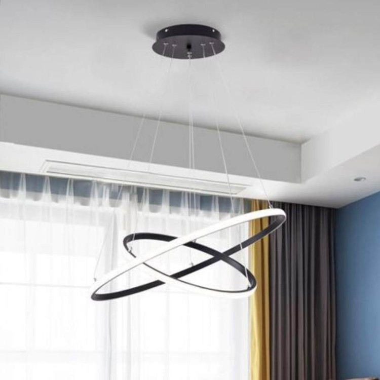 لوستر دوحلقه دایره نور از بیرون امیران لایتینگ به ابعاد 50_35سانتیمتر،که با رنگ بدنه مشکی مات استاتیک،درسه نوع(آفتابی،مهتابی و چند رنگ) ارائه میشود، لوستر مدرن دارای ریموت کنترل هست که از امکانات ریموت میتوان به کم زیاد کردن نور،حالت شب و اپلیکیشن موبایل (کم وزیاد کردن نور،تغییر طیف نوری،تنظیم زمان برای روشن شدن یا خاموش شدن خودکار) اشاره کرد