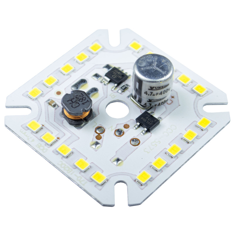 ضخامت PCB این چیپ 1 میلی متر میباشد .این چیپ با برق مستقیم شهری (220 ولت) روشن میشود و در تعمیر یا ساخت لامپ ها و پرژکتور های ال ای دی استفاده میشود . جهت استفاده از این چیپها پیشنهاد میشود با استفاده از خمیر سیلیکون به خنک کننده آلومینیومی (heat sink) مناسب به منظور جلوگیری از افزایش دمای چیپ و کاهش عمر محصول چسبانیده شود . شار نوری این محصول 6100 لومن و طول عمر آن 40000 ساعت میباشد . روی چیپ دو حرف L و N وجود دارد که فاز و نول به آنها متصل میشود .