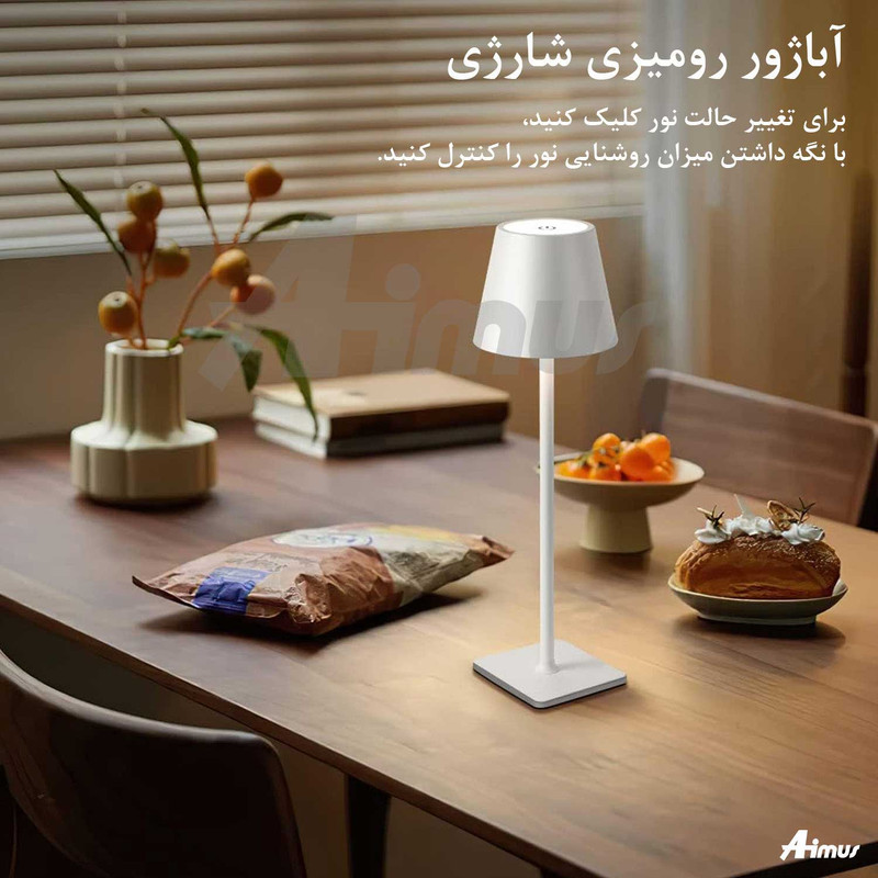 آباژور رومیزی شارژی کد IK198 با توان 3.5 وات رنگ نور 3000 کلوین، موجود میباشد. مقاومت در برابر رطوبت و غبار با IP54 این امکان را فراهم میآورد تا از این چراغ دکوراتیو علاوه بر نورپردازی فضای داخلی، در نورپردازی فضای بیرونی مانند تراس و یا روی میز رستوران هایی که فضای باز دارند قابل استفاده باشد. مزیت های چراغ شارژی رومیزی: این چراغ شارژی توسط باتری لیتیومی تغذیه شده و به وسیله شارژر پورت تایپ سی قابل شارژ میباشد.این محصول دارای قسمت لمسی (Touch-Switch) در بالای آن است و شما تنها با لمس آن قادر به خاموش، روشن و یا کم و زیاد کردن نور دستگاه و تغییر طیف نور دستگاه به سه رنگ مختلف هستید