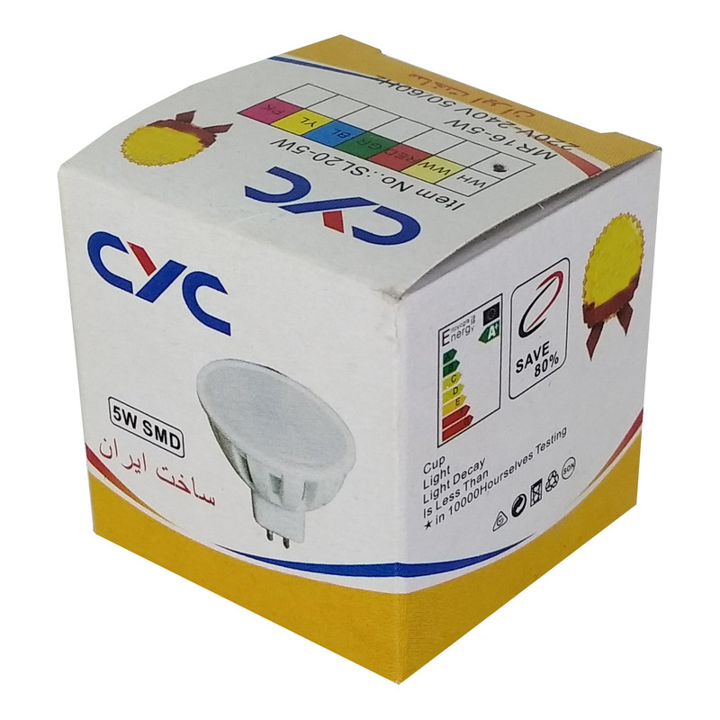 لامپ هالوژن 3 وات سی وای سی کد MR 16 پایه GU5.3 بسته 3 عددی